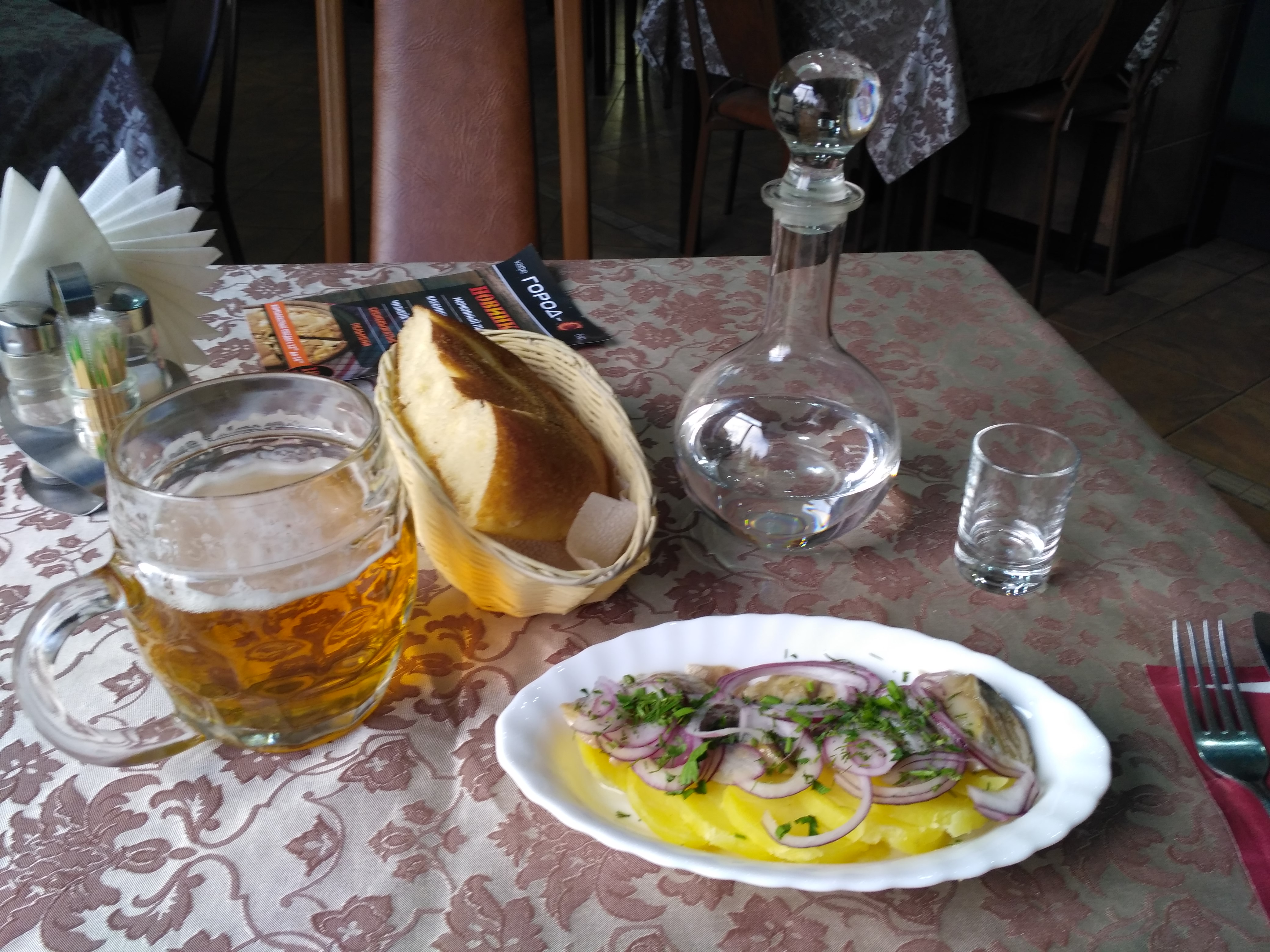Рядом две девицы, обедают, вот это уровень, литр водки, два нарзана, что то из закуски - не услышал. Но и этого достаточно.тя в восторге :)