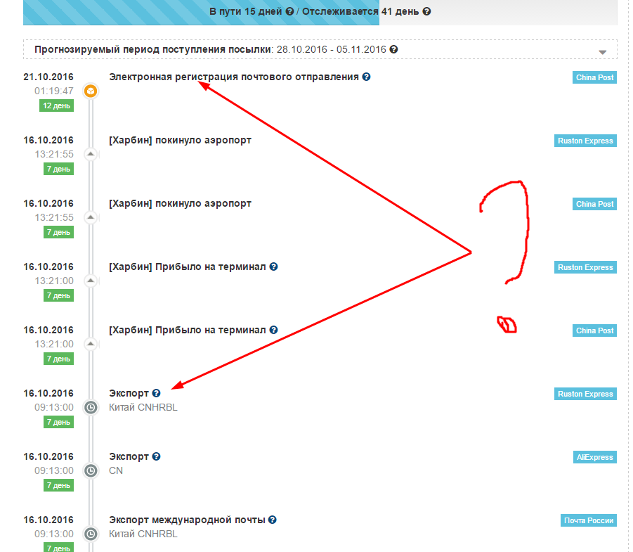 Чот как-то странно китайцы дни считают. Или у них в неделе 6 рабочих дней? Как по мне так 45 гарантированных дней доставки уже истекли, а эти алишные упыри постоянно про 03.11.2016 талдычат и бабло взад не вертают. А посылка спорная меж тем уже в мск
